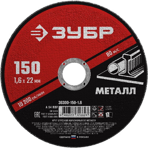 Круг отрезной абразивный по металлу, ЗУБР, МАСТЕР, 36300-150-1.6