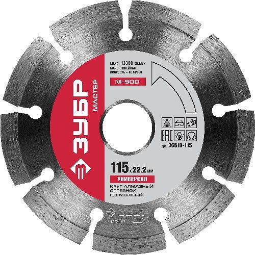 Круг отрезной алмазный для УШМ, ЗУБР, МАСТЕР, 36610-115