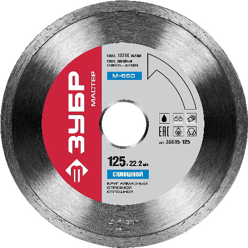 Круг отрезной алмазный для УШМ, ЗУБР, МАСТЕР, 36615-125