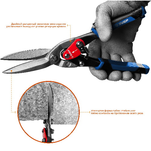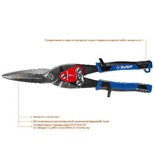 Ножницы по металлу прямые удлинённые, ЗУБР, ПРОФЕССИОНАЛ, 23130-SL