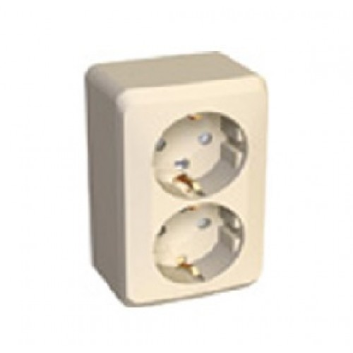 Розетка 2-м ОП Этюд 16А с заземлением защитные шторки крем SchE PA16-008K