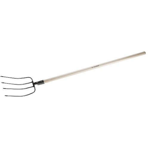 Прочная рабочая часть вил изготовлена из высокоуглеродистой стали, закалена и покрыта краской для защиты от коррозии.